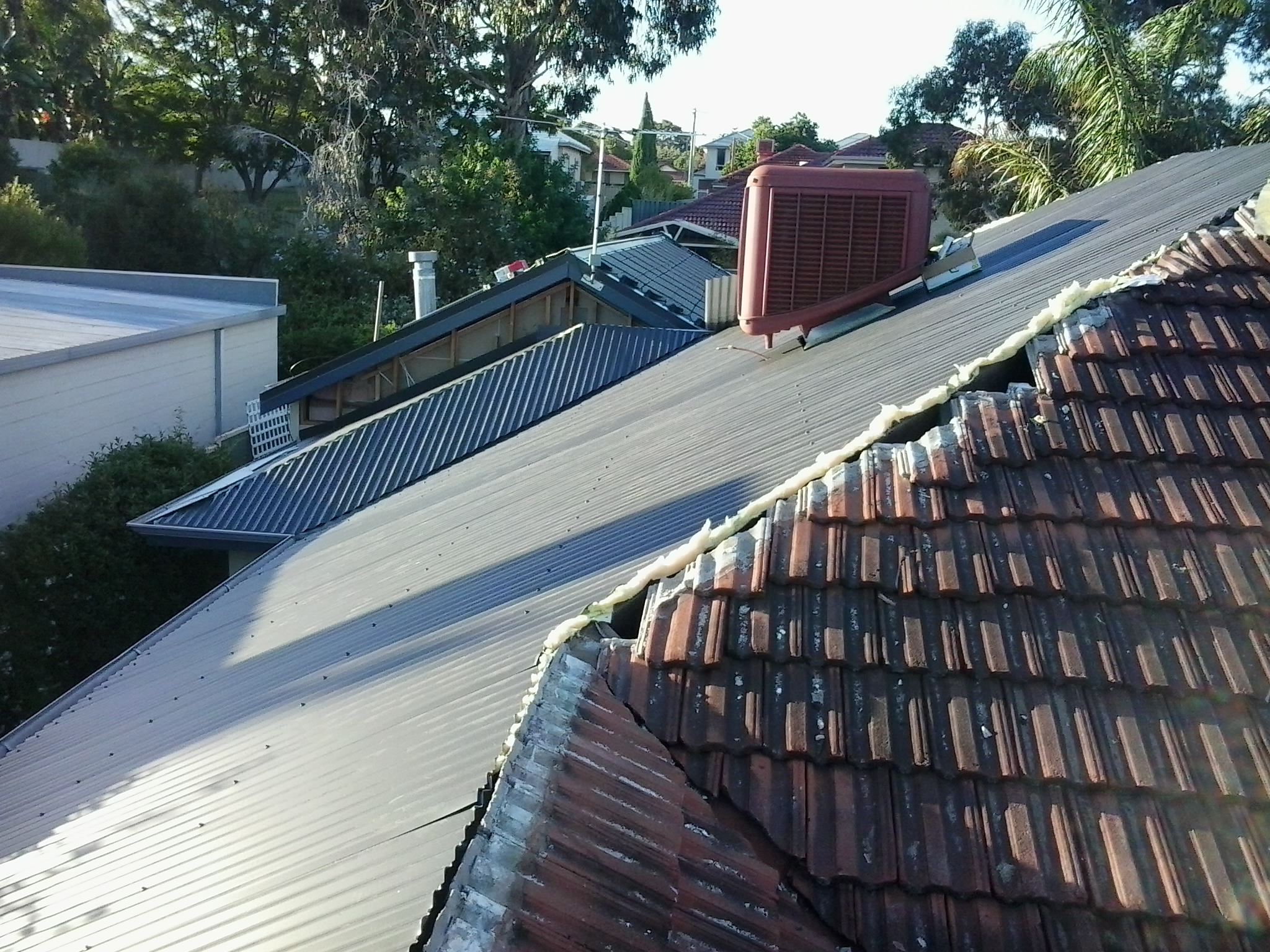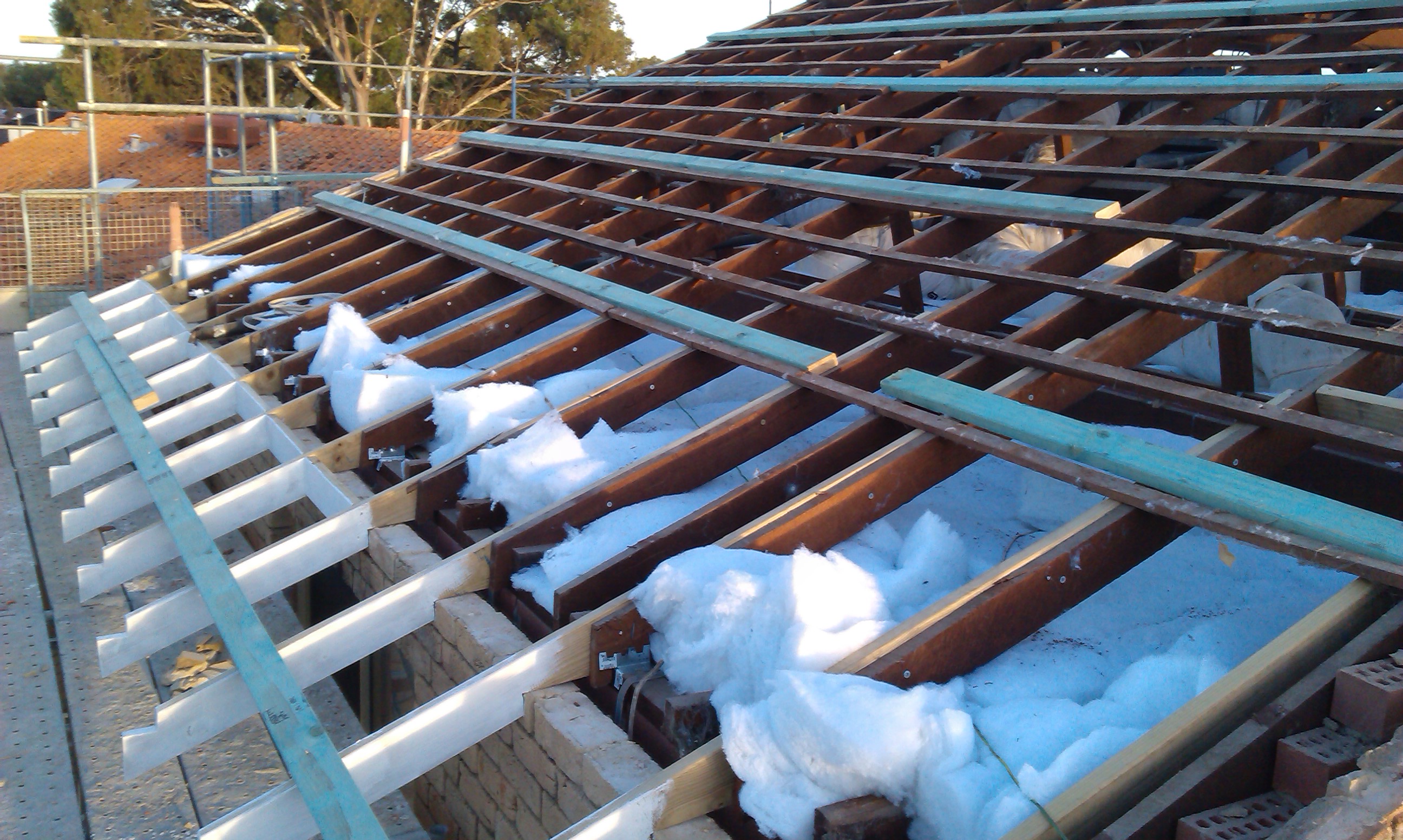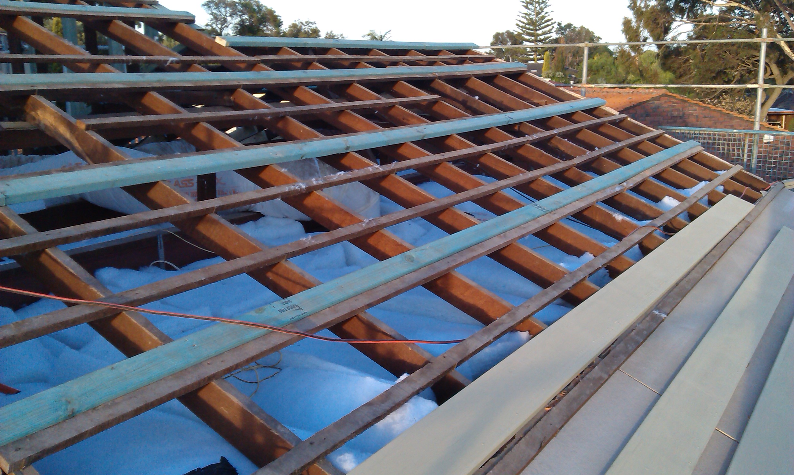 Much of our older housing stock has concrete or clay tiled roof coverings. Much of this is in poor condition due to age and lack of maintenance over the years. Ridgeline is able to assist you in replacing your existing roof cover as required, whether this is a straight forward like for like replacement, a tile to tin replacement or a tin to tile replacement. Most commonly, an existing tiled roof is converted to a colorbond steel roof, and the opportunity taken at the same time to also remove the old degraded roof space insulation, and replace with modern insulation materials. Along with the use of an anticon blanket under the new steel sheeting, a newly installed roof can have significantly improved insulating properties compared to an older tiled roof. This translates into a more pleasant living environment, along with more efficient and therefore cheaper air conditioning bills.