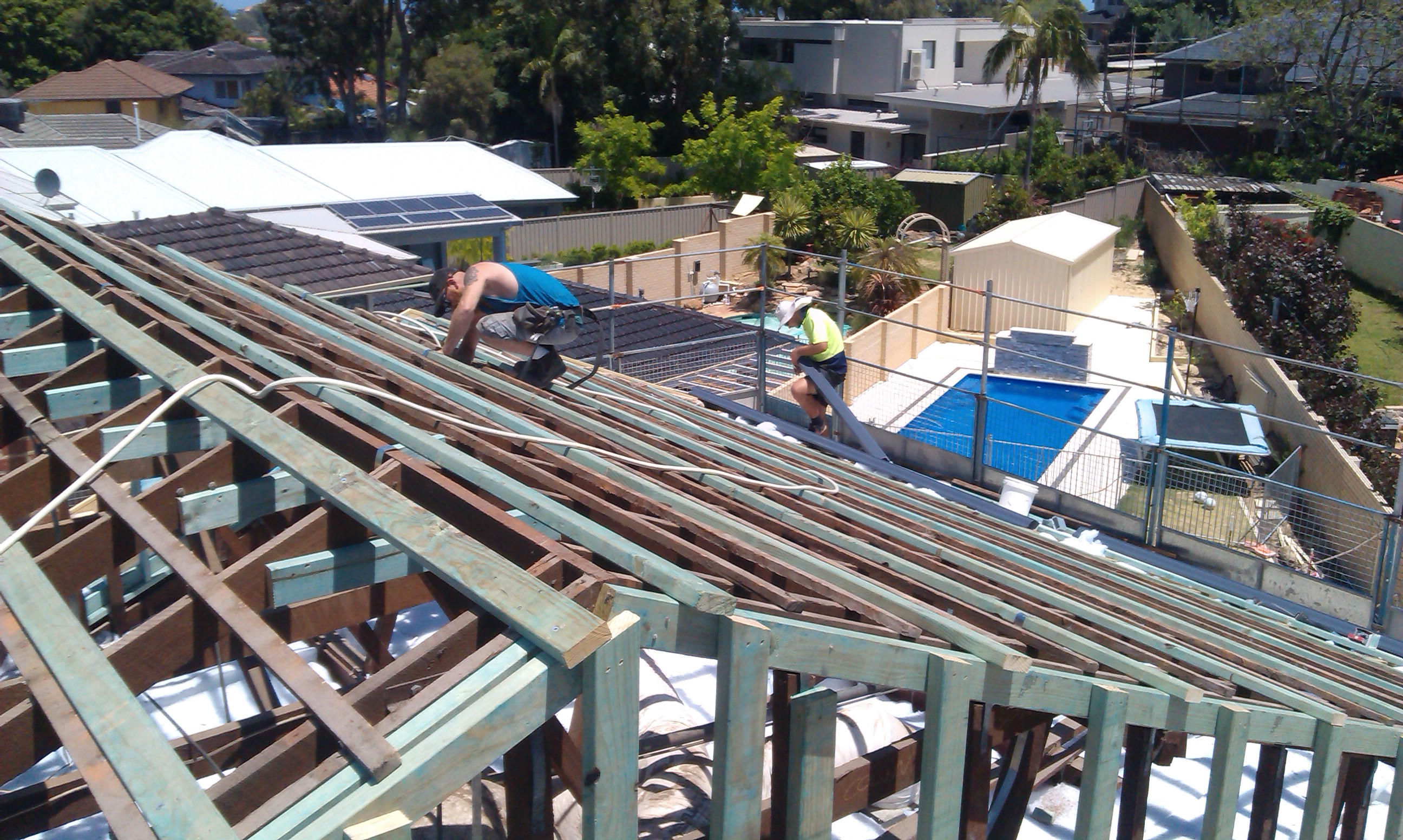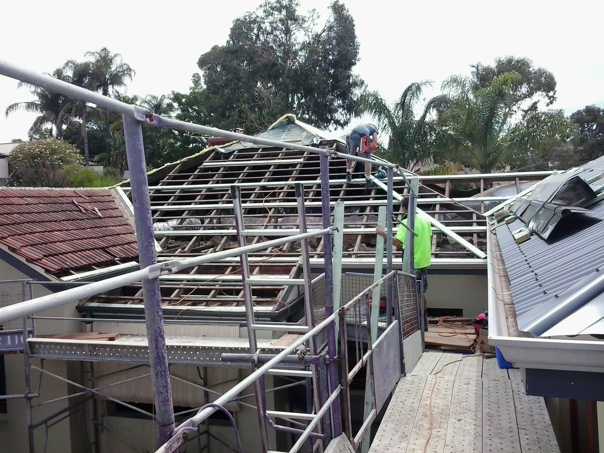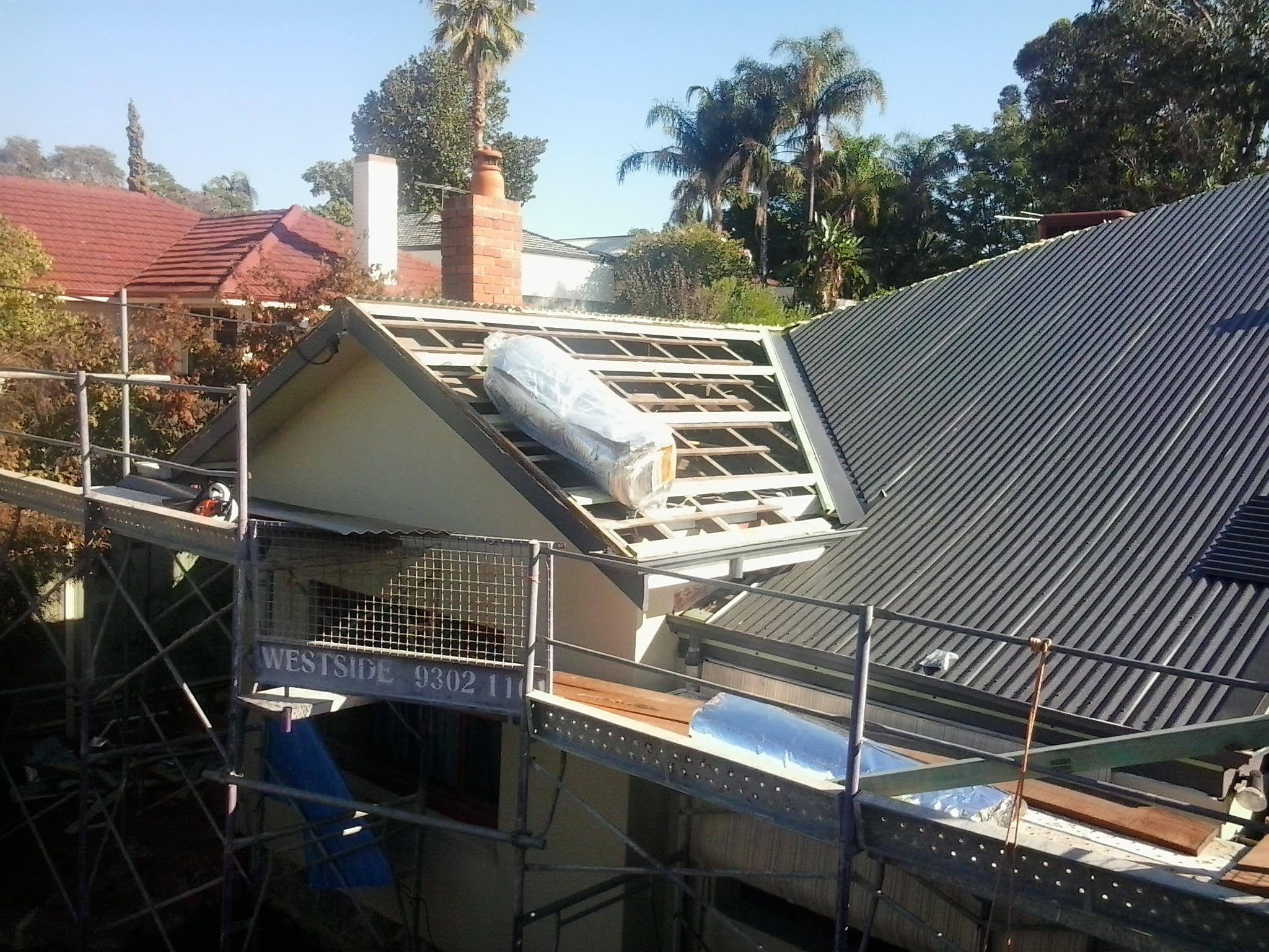 Much of our older housing stock has concrete or clay tiled roof coverings. Much of this is in poor condition due to age and lack of maintenance over the years. Ridgeline is able to assist you in replacing your existing roof cover as required, whether this is a straight forward like for like replacement, a tile to tin replacement or a tin to tile replacement. Most commonly, an existing tiled roof is converted to a colorbond steel roof, and the opportunity taken at the same time to also remove the old degraded roof space insulation, and replace with modern insulation materials. Along with the use of an anticon blanket under the new steel sheeting, a newly installed roof can have significantly improved insulating properties compared to an older tiled roof. This translates into a more pleasant living environment, along with more efficient and therefore cheaper air conditioning bills.